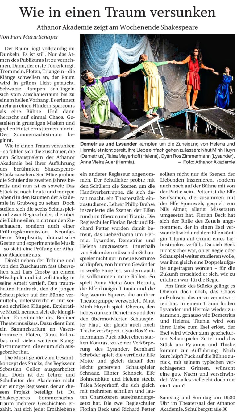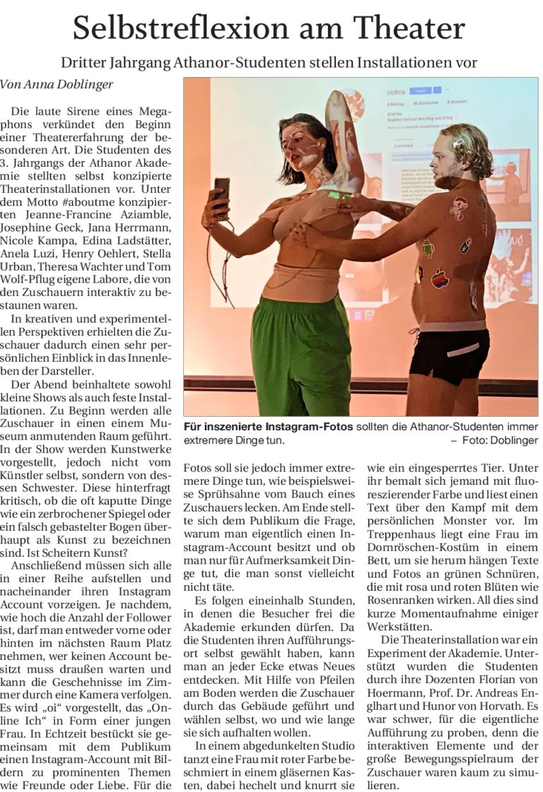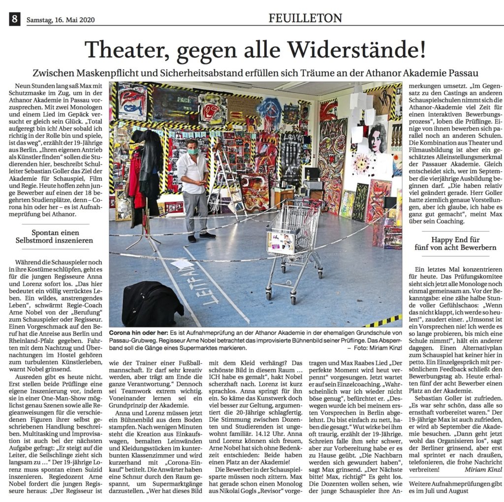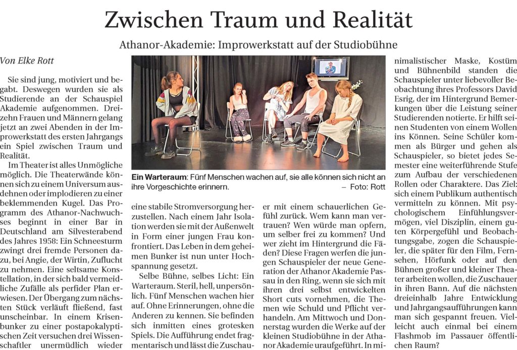 - Schauspielausbildung in der „Athanor Akademie für Darstellende Kunst“ Schauspielschule in Passau